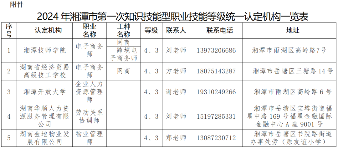 為進一步提高全省技能人才評價質(zhì)量,提升職業(yè)技能等級證書含金量,省人社廳定于4月實施2024年第一次知識技能型職業(yè)技能等級統(tǒng)一認定,湘潭共有5家職業(yè)技能等級統(tǒng)一認定機構(gòu),可方便和服務廣大勞動者就地就近參與認定。