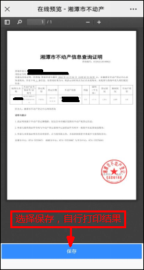 ⑹.點擊“保存”,自行打印即可,如需重復查看查詢結(jié)果,可在公眾號“個人中心”內(nèi)點擊查詢歷史查看